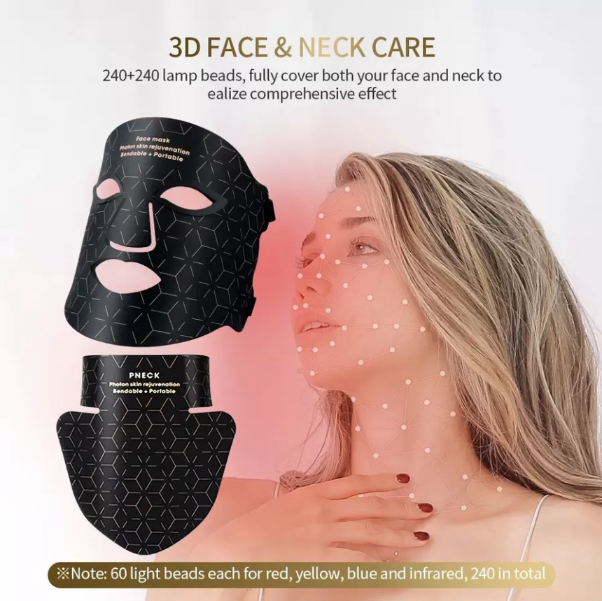Comfortable LED Face and Neck light therapy mask is made of flexible silicone material, with high-quality and adjustable straps that conform to fit the facial skin better. Non-irritating, with no blind spots, adaptable to various face shapes, foldable for convenient portability, you can wear it anytime and anywhere